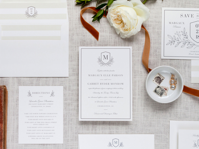 Custom wedding invitations by Paper & Palm. Amelie Collection