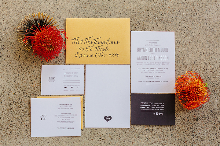 mid-century modern industrial minimalist wedding invitations